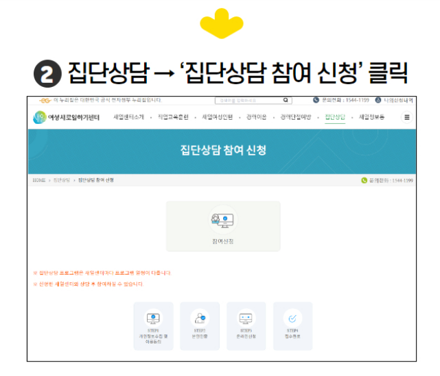 ② 집단상담 → ‘집단상담 참여 신청’ 클릭