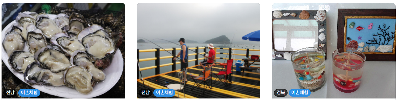 여름방학을 맞아 여러 지자체에서는 부모님과 아이들과 함께 여러 가지 체험 행사를 많이 진행하고 있습니다. 그중에서 지금 인기 있는 어촌마을 체험행사를 많이 신청하고 있는데요. 코로나 이후로 여행 체험을 못하신 분들은 이참에 아이들과 함께 어촌마을 낚시하기, 조개 줍기, 양초 만들기 등 여러 가지 체험을 해보세요.