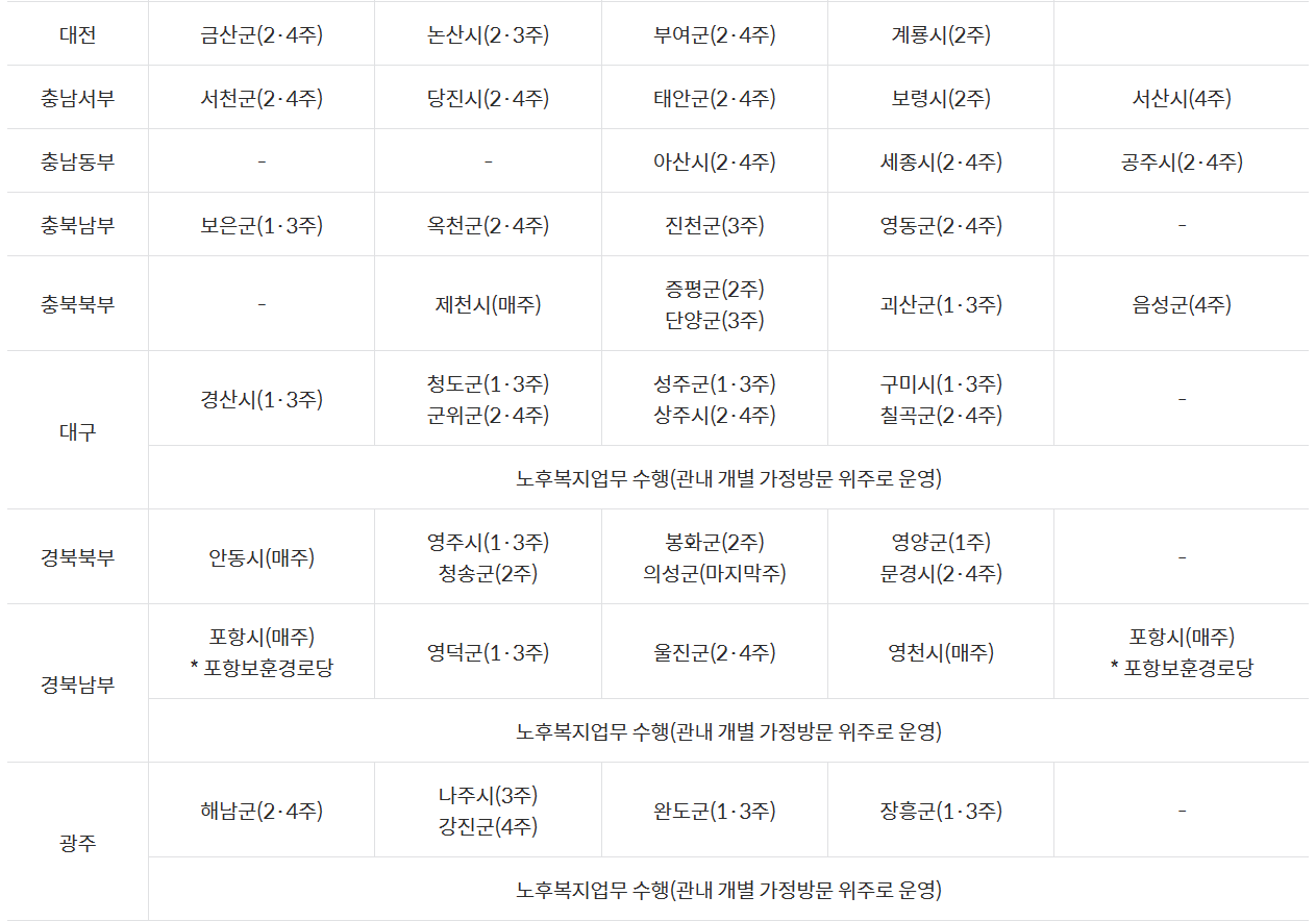 국가보훈부는 노인성 질환 및 상이처 등으로 거동이 불편한 보훈대상자의 가정을 정기적으로 방문하여 가사활동·건강관리 등을 지원하는 재가복지서비스를 해당 지역에서 지원하고 있습니다. 요양지원, 건강·문화프로그램 지원 등 다양한 노후복지 서비스를 주기별로 시행하니 해당지역의 재가복지 서비스를 살펴보세요.