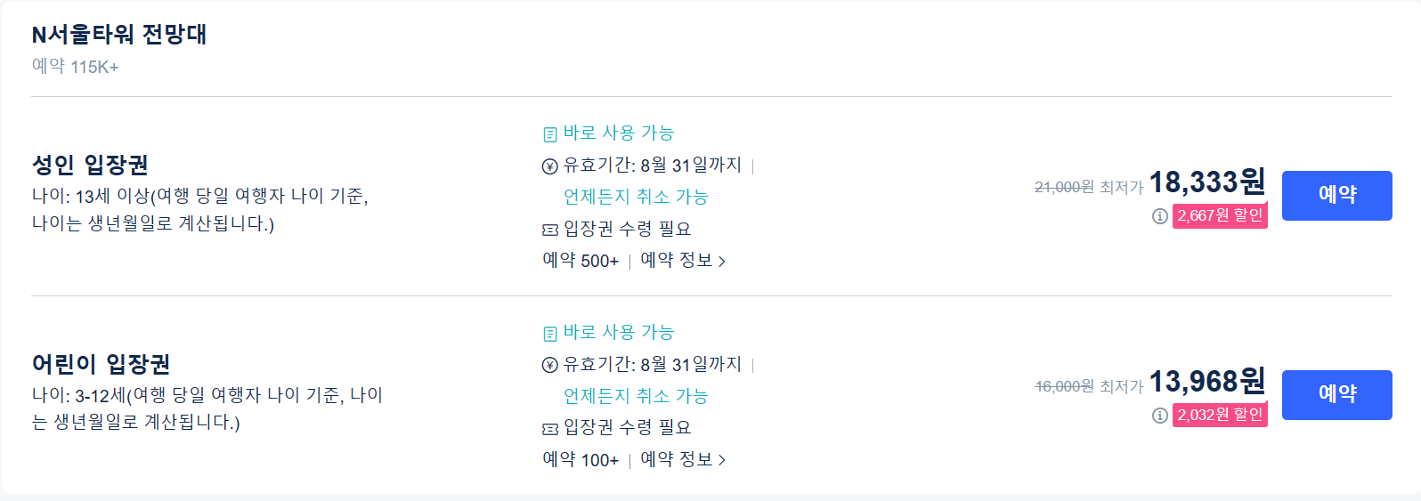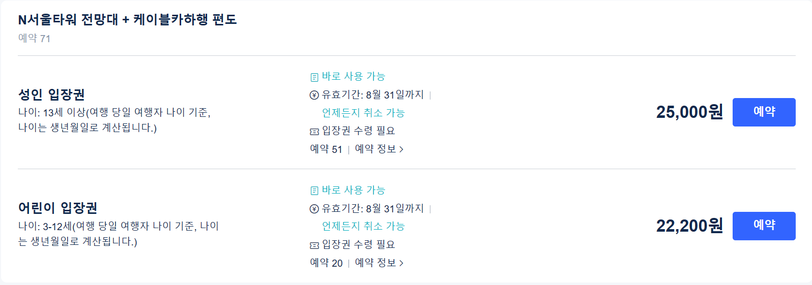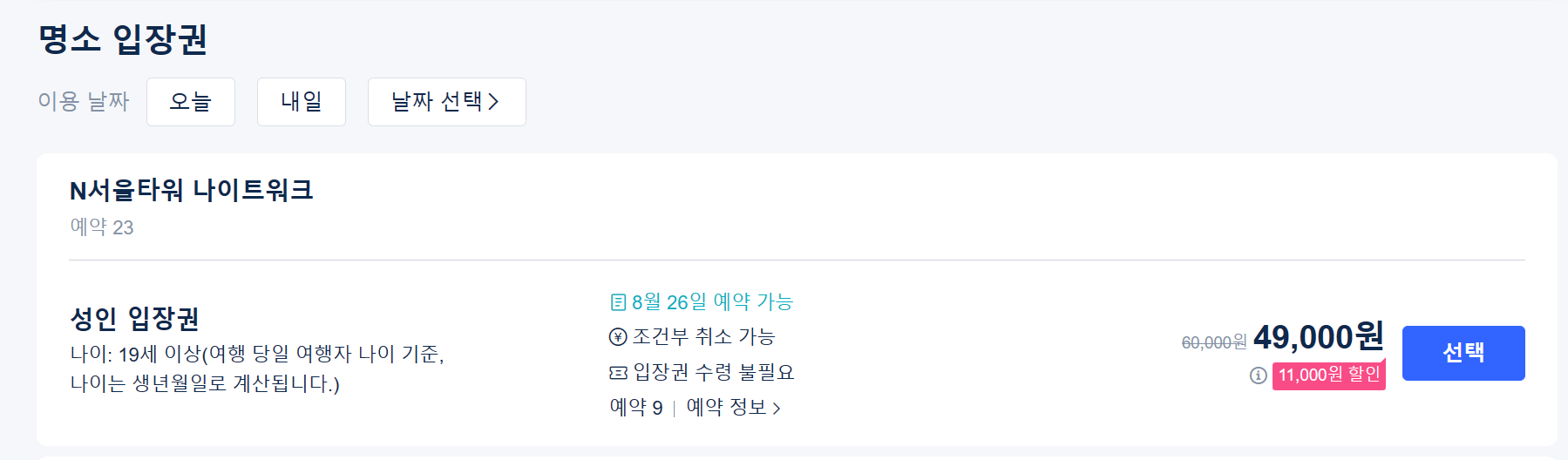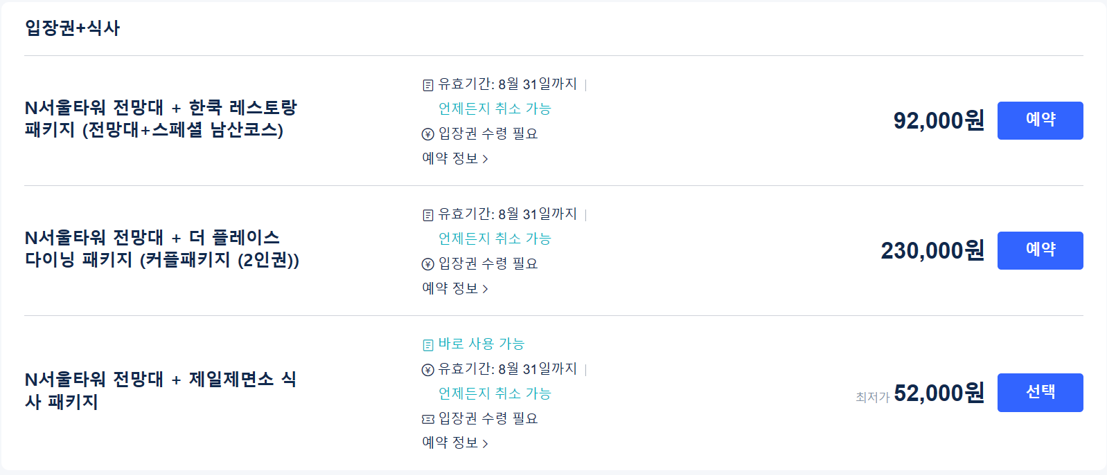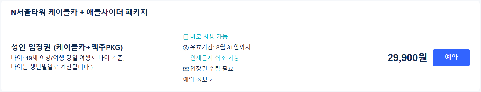 ◈ N서울타워 입장권 및 선택 예약하기