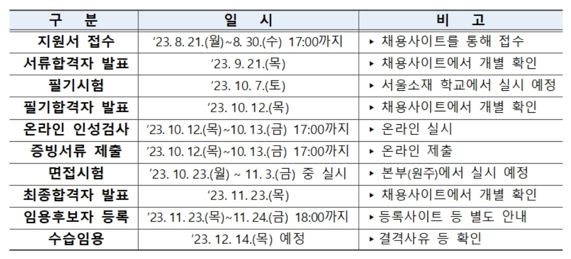 ◈ 최종합격자는 12.14(목) 부터 수습임용 될 예정이며 지원한 권역에 위치한 본부, 지역본부 및 지사(출장소 포함)에서 근무하게 된다.
