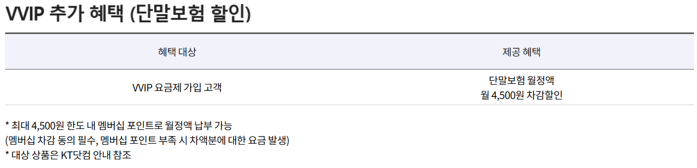 - 혜택 : KT 멤버십 VVIP 고객 블록팩 4개 무료 (포이트 차감)